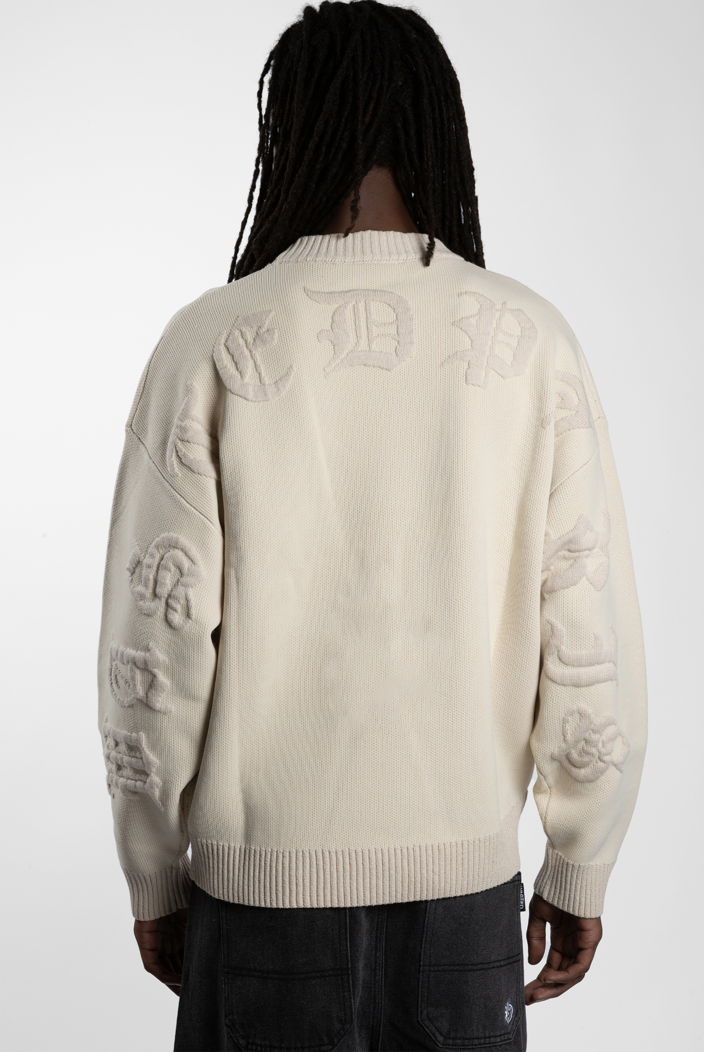 WASTED PARIS KINGDOM CURVE SWEATER – SAND sweater is made in a thick mesh. It features a boxy fit